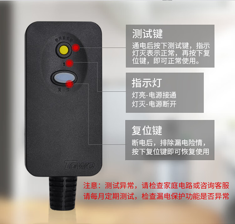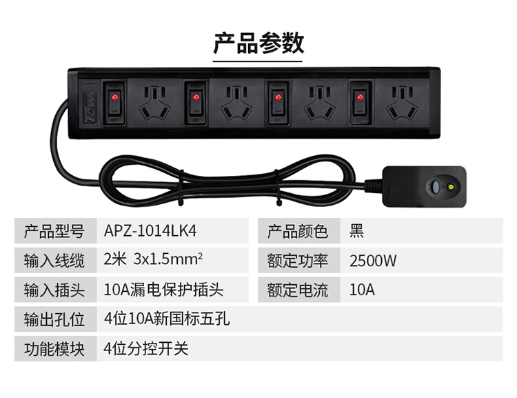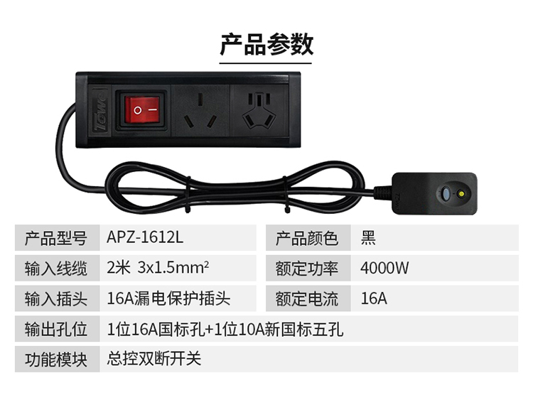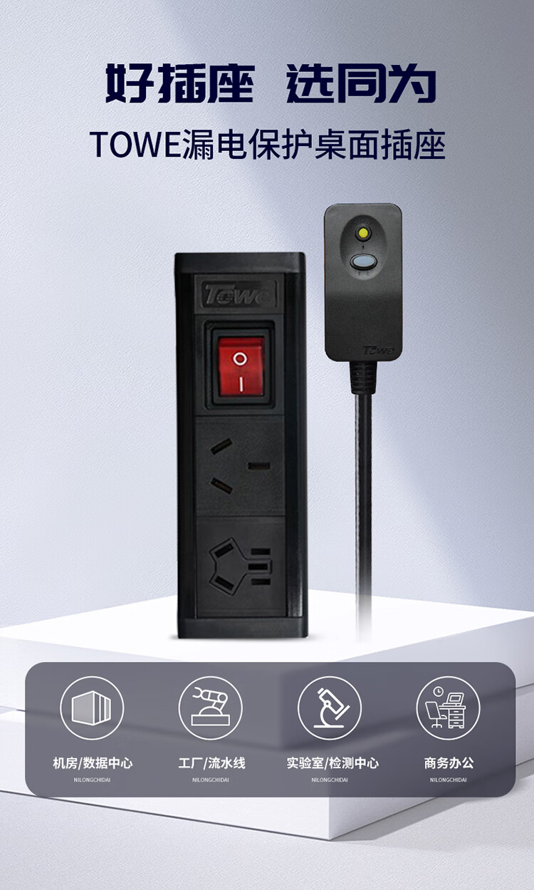 同为TOWE10A/16A漏电保护插头插排插座 安全保护不触电接线板拖线板 摔不烂高强度铝合金外壳插座 漏电保护桌面插座 加粗线缆 APZ-1612L/1013UL/1014LK4/1016L