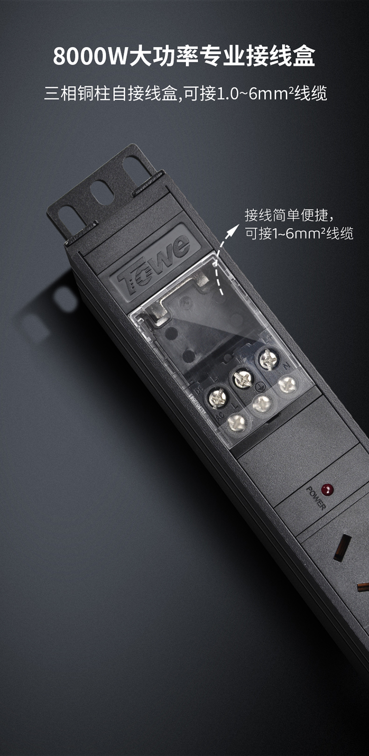 TOWE同为32A/63A超大功率自接线PDU机柜插座 带专业接线盒 不带线竖装垂直安装工程插排 多位IEC插孔自接线 10位C13,EN32J/I1003