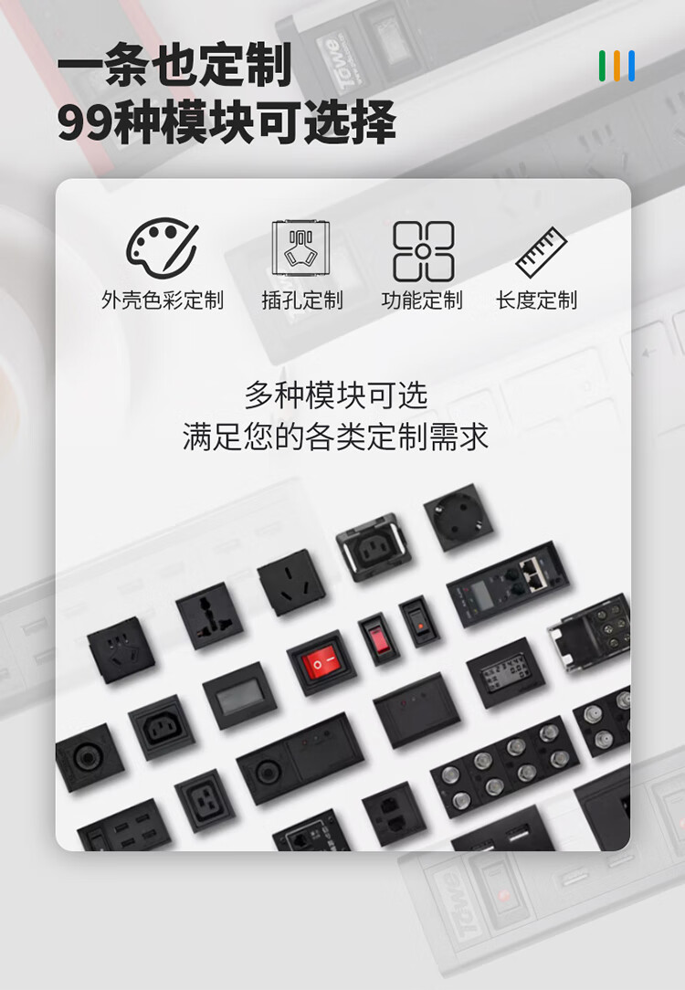 同为TOWE桌面嵌入式总控插线板/拖线板 多功能创意炫彩桌面隐蔽式PDU插排插座 新国标二位三位四位三合一总控开关 嵌入式工业级安全插座APZ-1012QJ/1013QJ/1013QJN/1014QJ