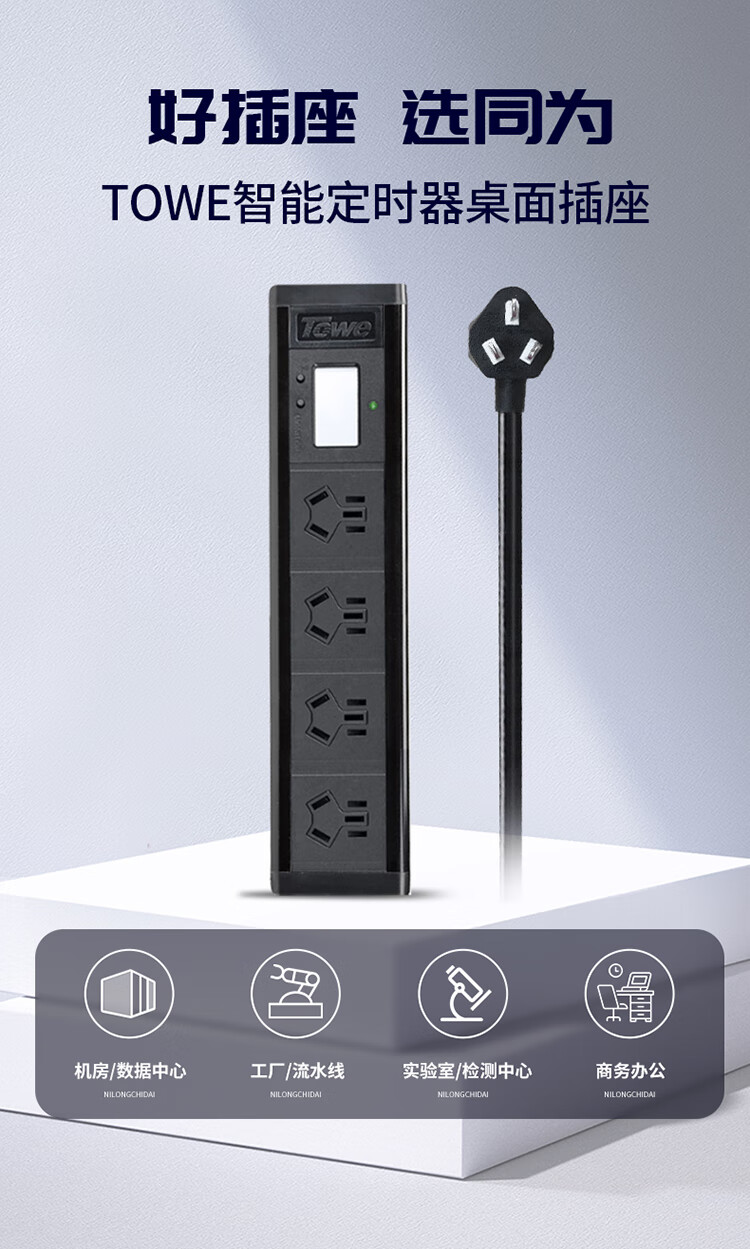 TOWE同为智能管理定时桌面PDU插座电动车电动摩托车电瓶车充电专用插座防过充智能定时插座桌面插排pdu接线板 APZ-1012IC/APZ-1014IC