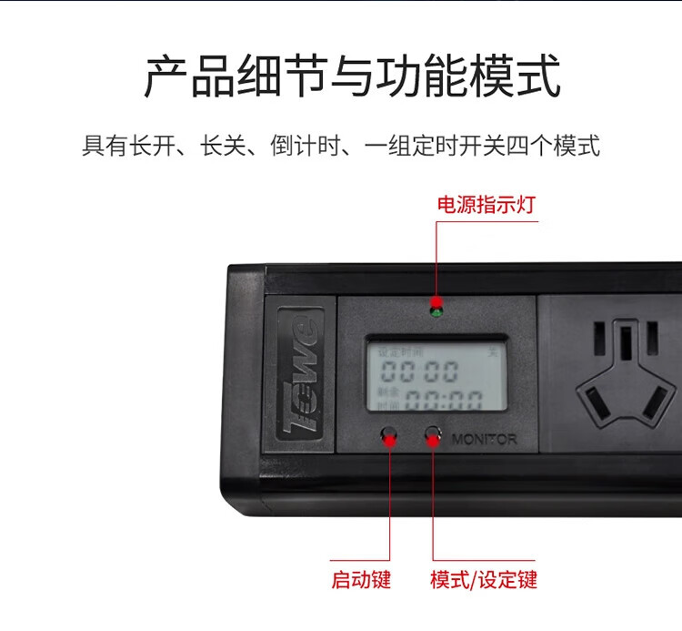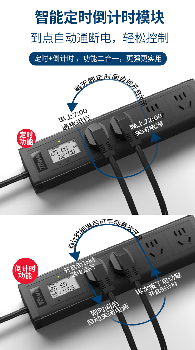 同为TOWE智能倒计时循环开关定时器节能绿色插排插座转换器 定时器开关/微电脑时控开关/时间控制器插排插座 智能定时器桌面插座 APZ-1013UD/APZ-1014D