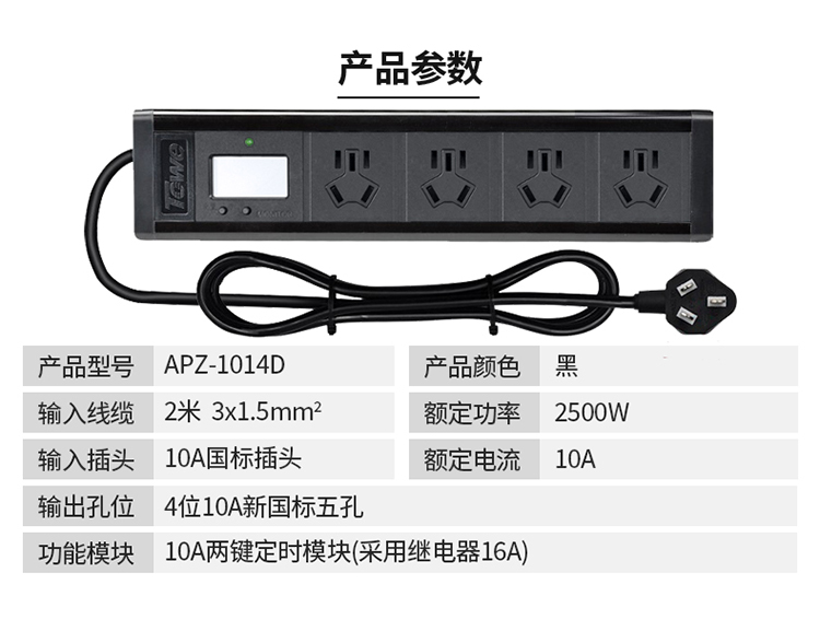 同为TOWE电流电压功率计量数显插排插座 显示电压、电流、功率、功率因素、电量,计算电价、电费、CO2等 功率计量智能数显插座 APZ-1014JL/APZ-1614JL