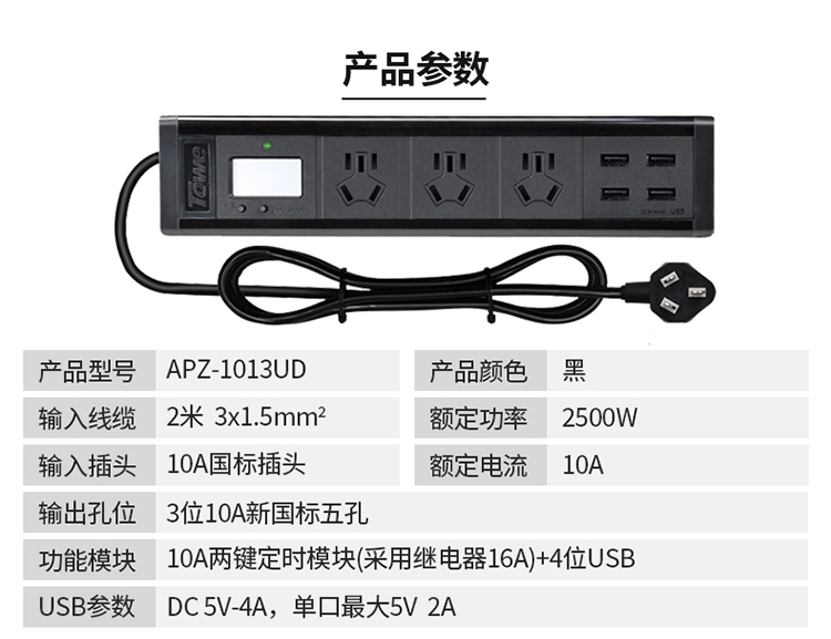 TOWE同为智能管理定时桌面PDU插座电视机电脑保护器插座伴侣智能自动关断电插排插座电视专属接线板插板拖线板 APZ-1014MC3/APZ-1014UMC3