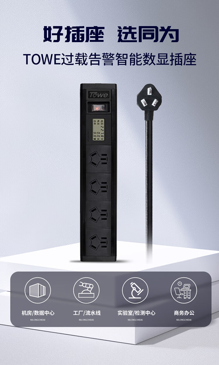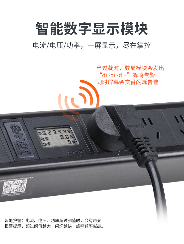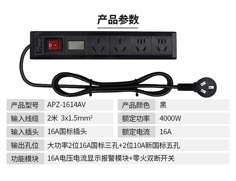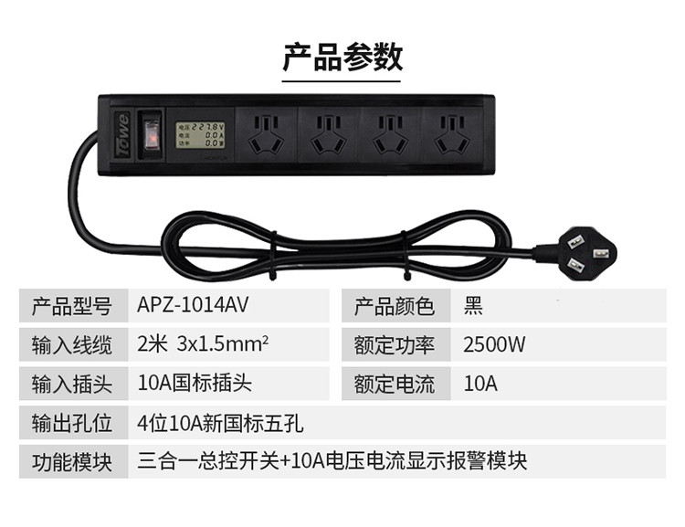 同为TOWE智能电流电压表数显插排插座 分段分级过载声光报警拖线板插线板 过载告警智能数显插座 工业级安全插座 智能告警安全插座 APZ-1014AV/APZ-1614AV