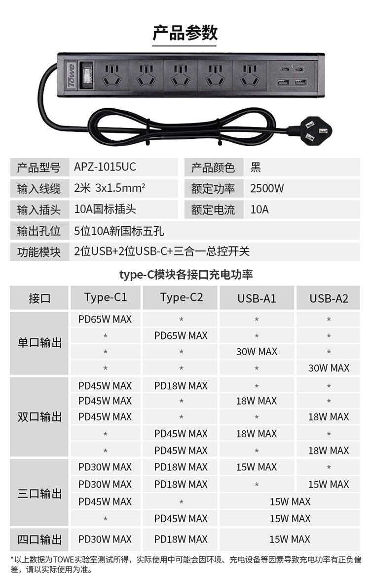 TOWE同为大功率USB-C快充桌面PDU插座批量刷机充电USB集线器HUB插排插座支持笔记本电脑和手机等B/C接口充电 APZ-1013UC3K/APZ-1014UC4/APZ-1015UC5