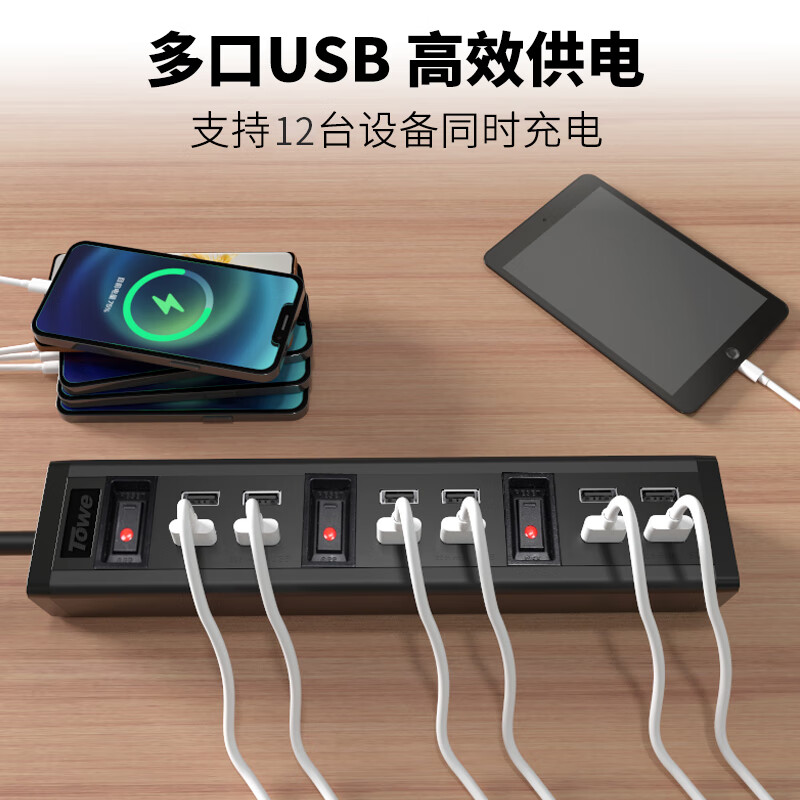 TOWE同为USB快充桌面PDU插座大功率防过充工业级智能快充USB多口分控usb接线板批量刷机充电USB集线器HUB插排插座 APZ-1013U3K/APZ-1014U4/APZ-1015U5