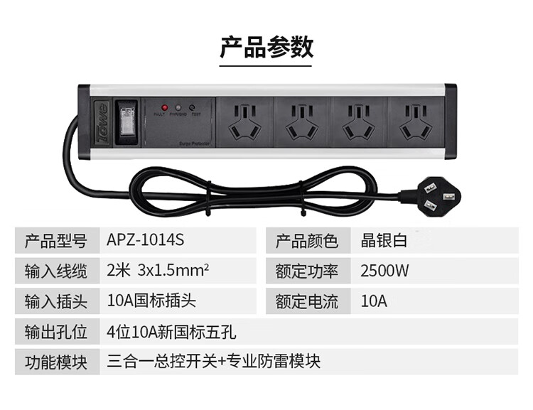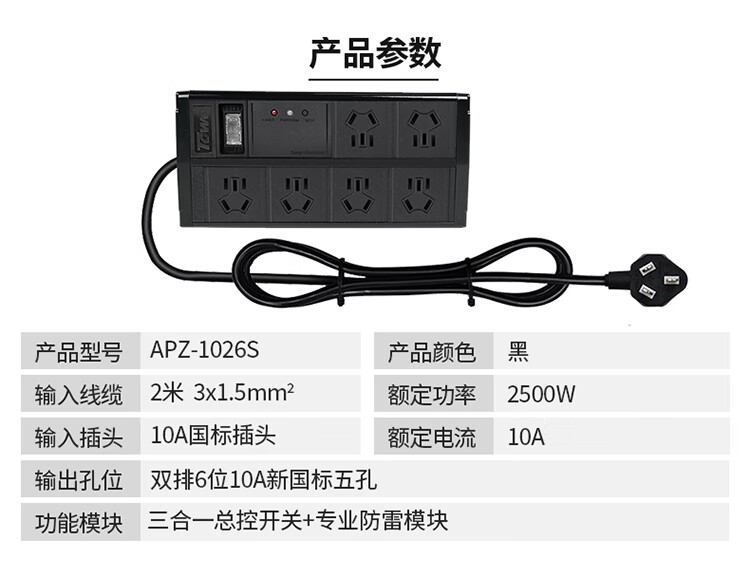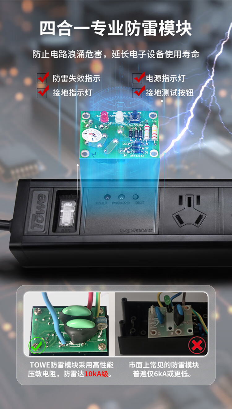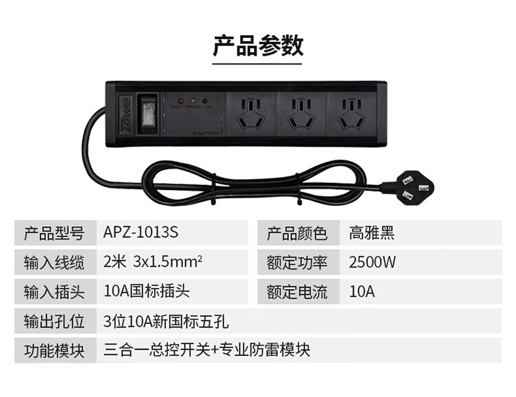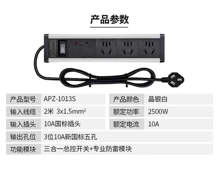 TOWE同为专业防雷防浪涌桌面pdu插排插座新国标三位四位五位六位三合一总控工业插座摔不烂高强度铝合金阳极氧化外壳插座 商务办公、高端家用 APZ-1013S/APZ-1014S/APZ-1026S