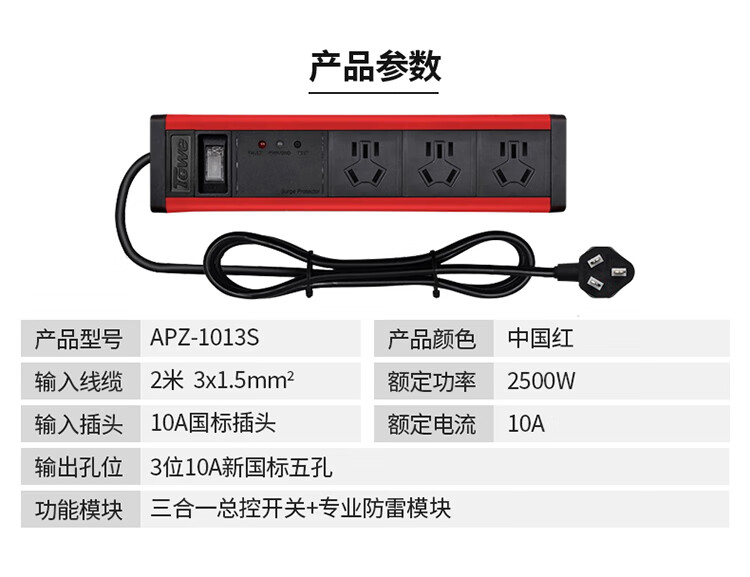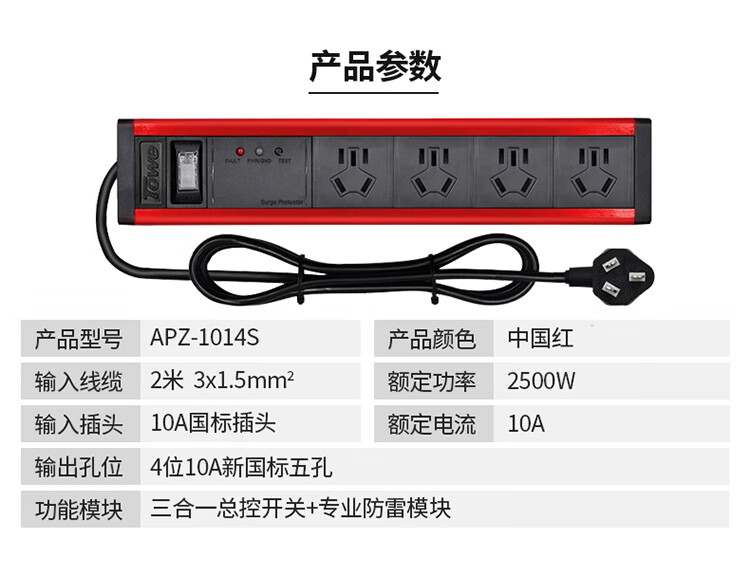 TOWE同为工业级防雷防浪涌桌面PDU插座新国标三位四位六位三合一单开单控工业插座 摔不烂高强度铝合金阳极氧化外壳插座 APZ-1013K3S/APZ-1014K4S/APZ-1026K6S
