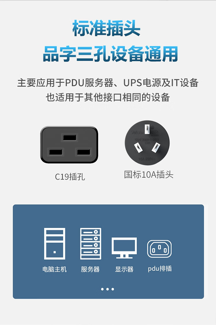 TOWE同为国标10A转C19线1.5平电源转换线IDC机房数据中心服务器PDU电源延长线TW-F-G10/C19