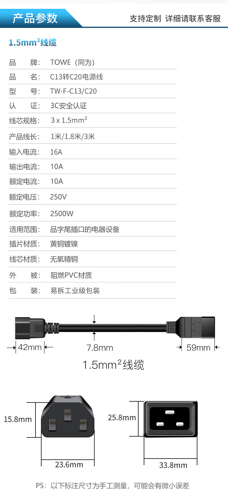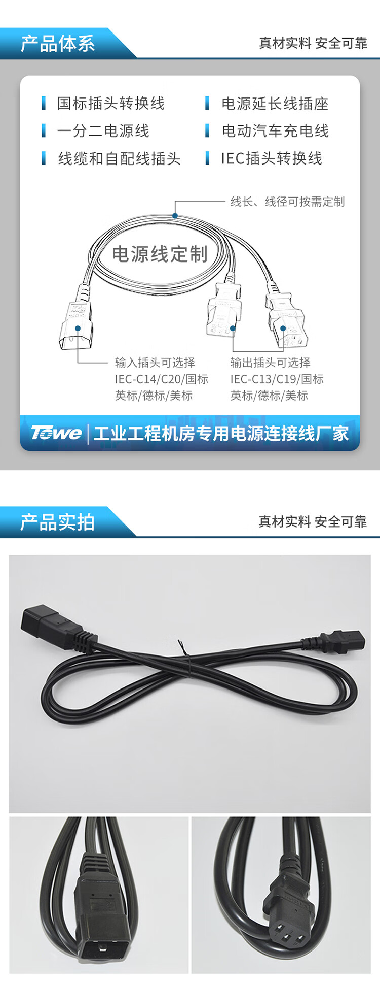 TOWE同为IEC C13转C20线1.5平电源转换线IDC机房数据中心不间断电源UPS服务器PDU电源线TW-F-C13/C20