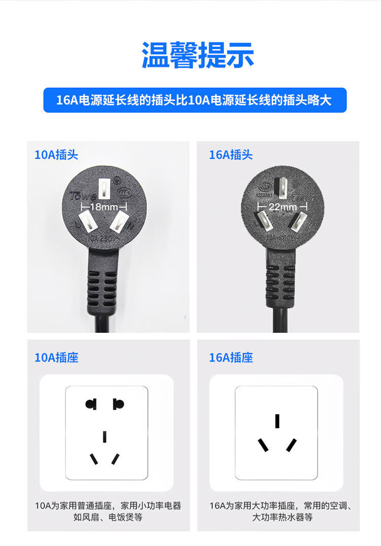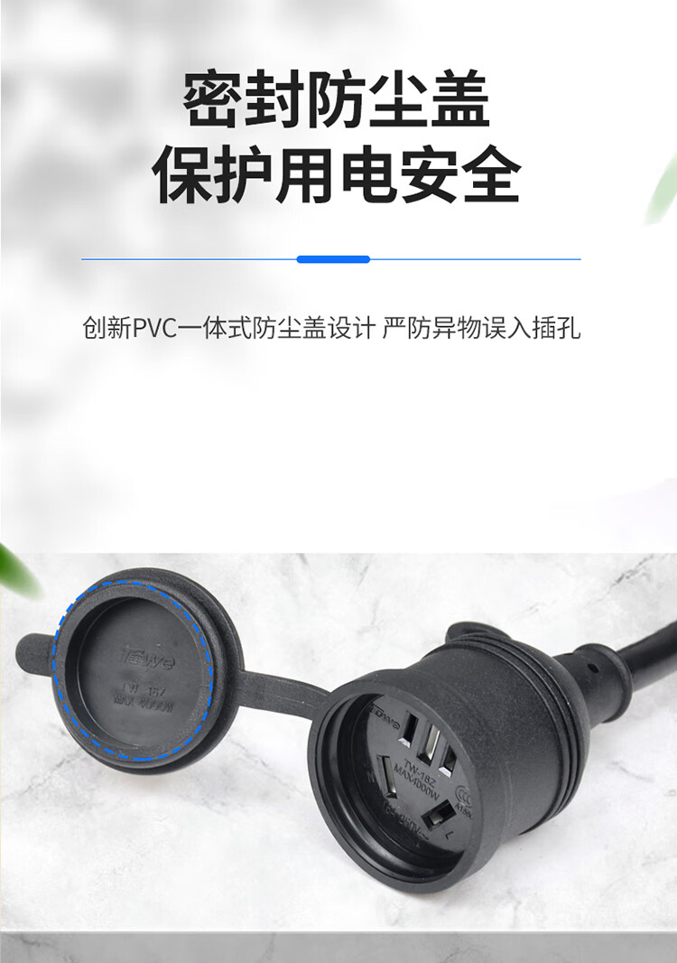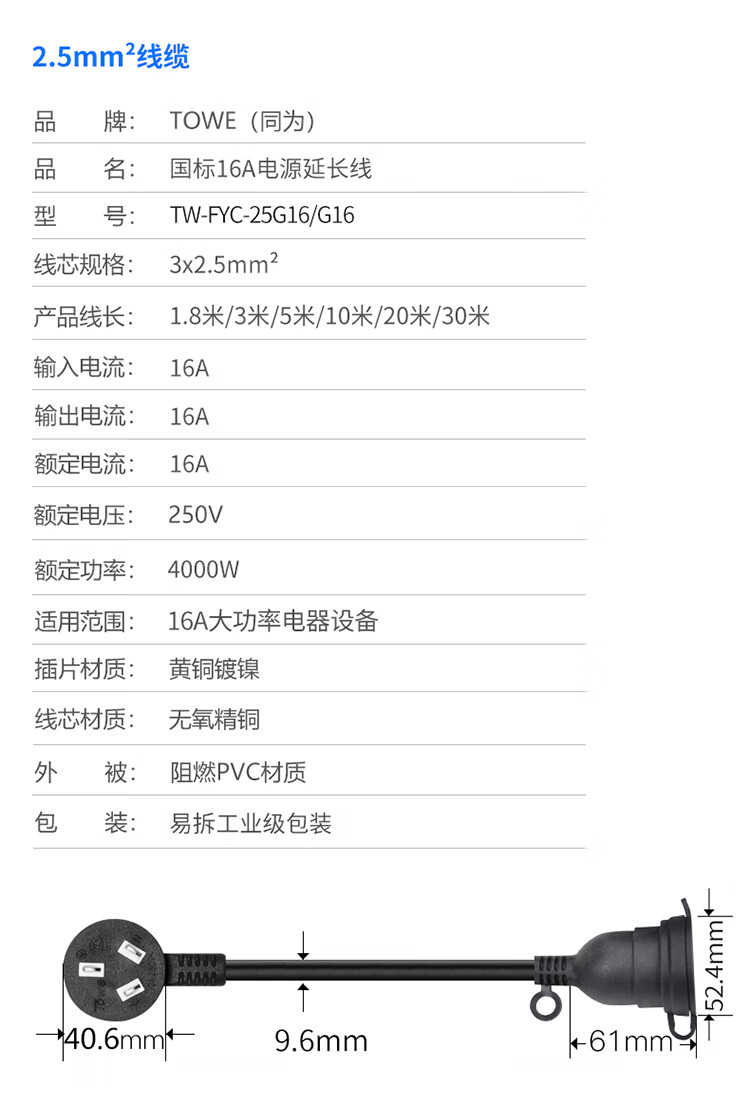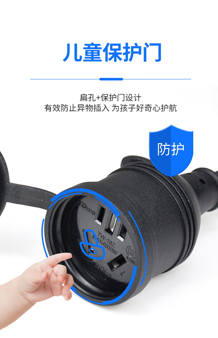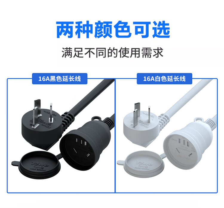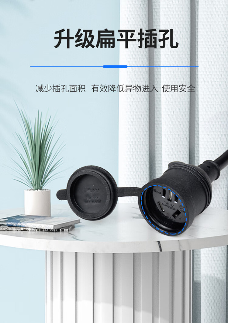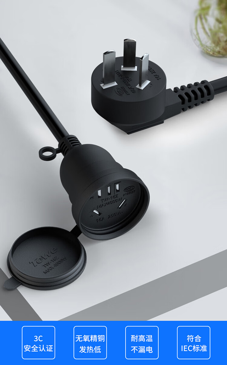 TOWE同为国标16A延长线插座4.0平线电动车电瓶车电动汽车16a大功率 空调热水器 防水延长线插座 TW-FYC-4G16/G16