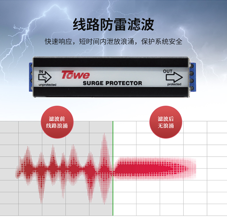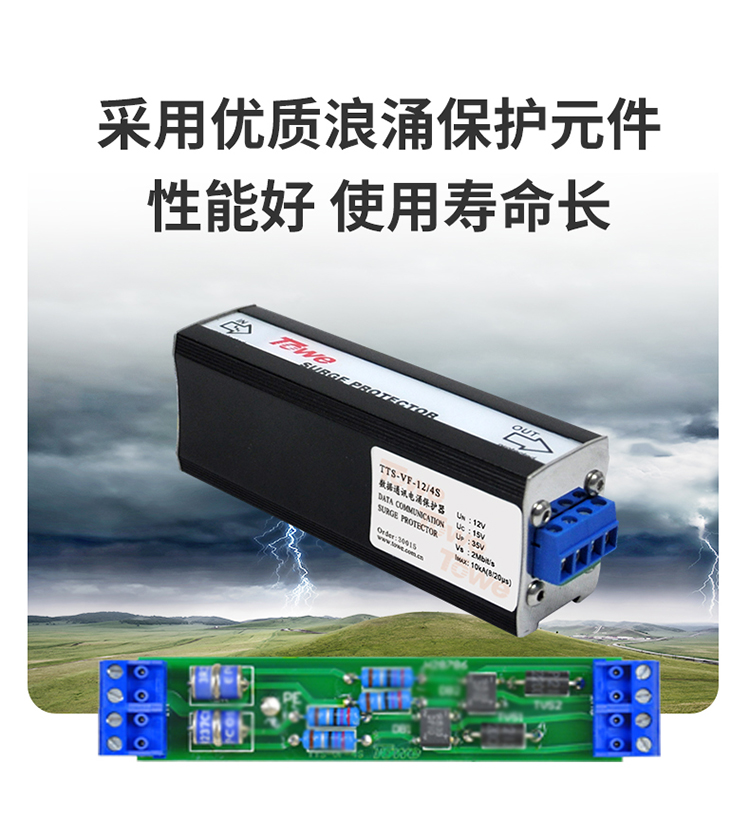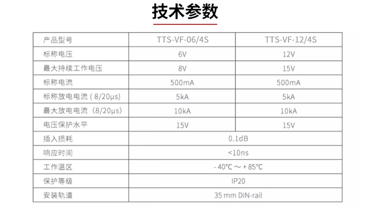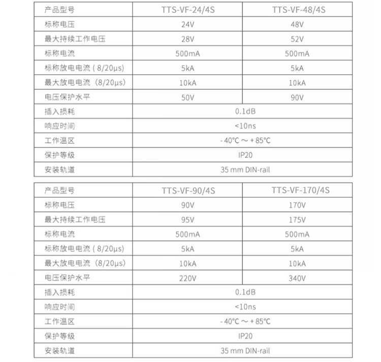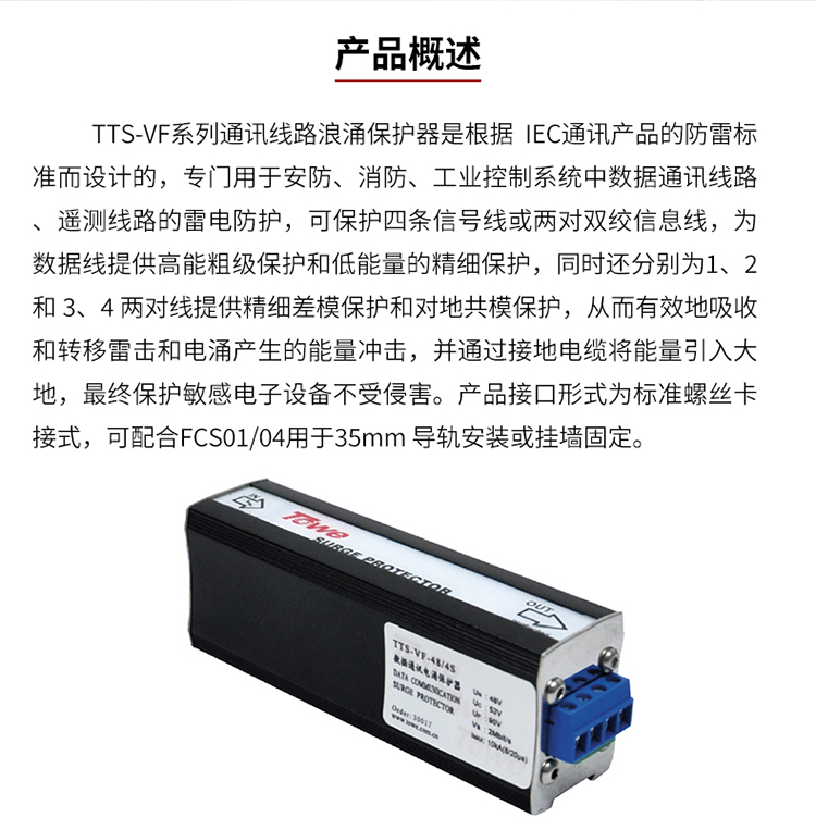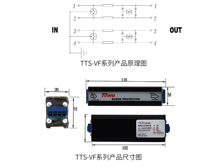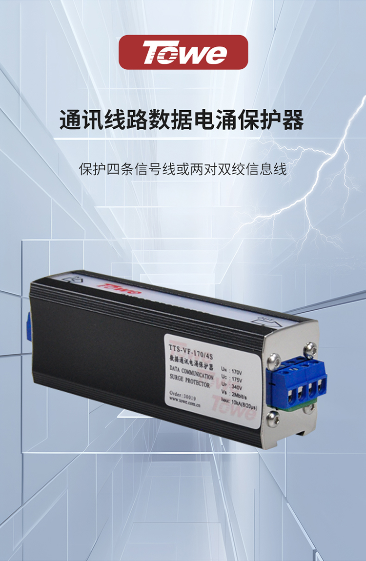 TOWE同为卡接式通讯线路电涌保护器可保护4条信号线或两对双绞信息线 专门用于安防、消防、工业控制系统中数据通讯线路、遥测线路的雷电防护 TTS-VF-06/12/24/48/90/170/4S