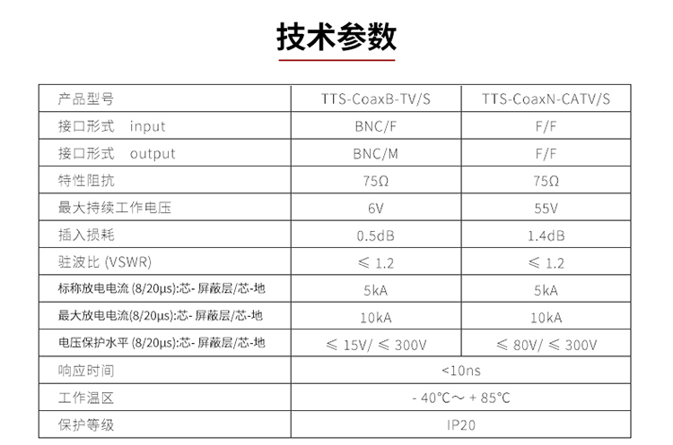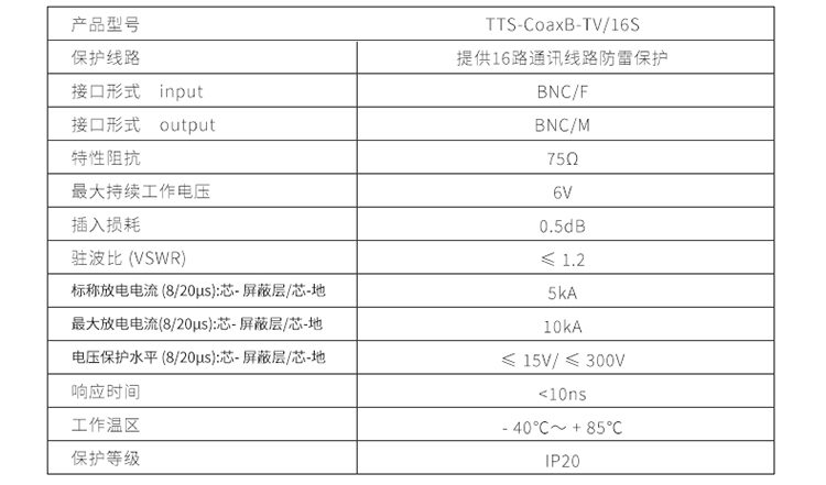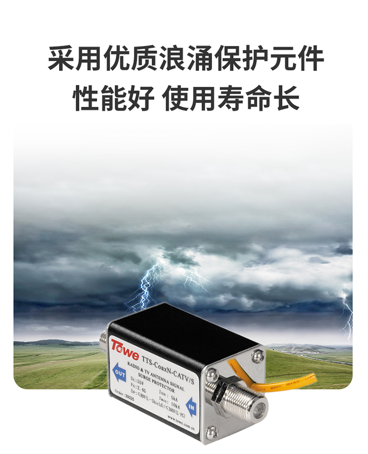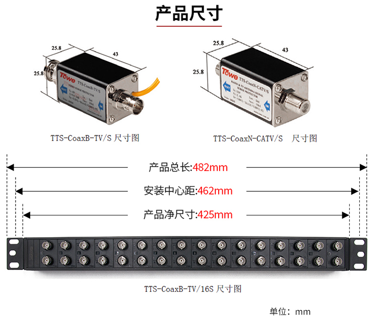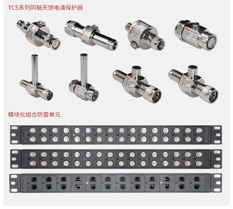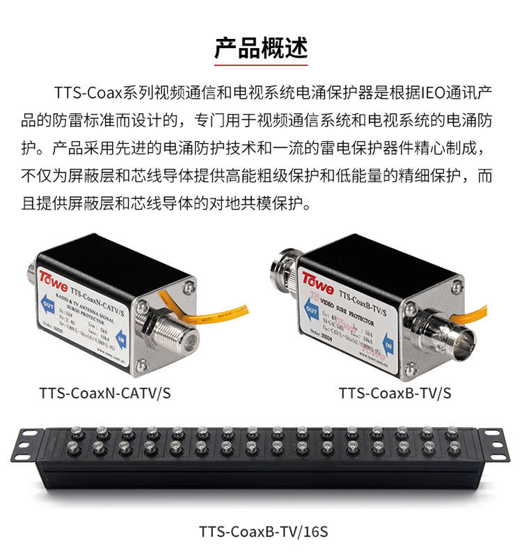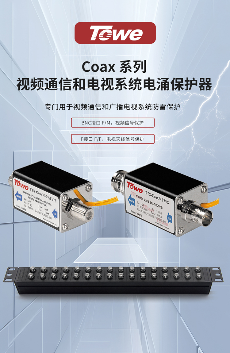 TOWE同为Coax视频通信与电视通讯系统电涌保护器为同轴通讯设备、监控矩阵、电视天线信号进行防雷防浪涌保护 TTS-CoaxB(CoaxN)-TV/S(TV/16S、CATV/S)