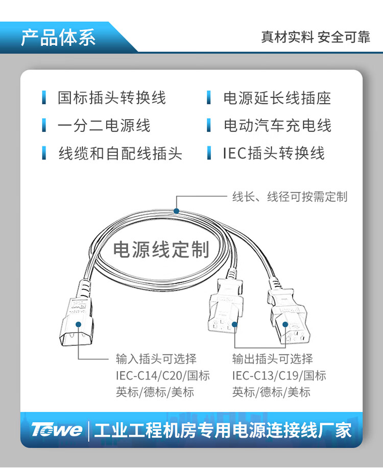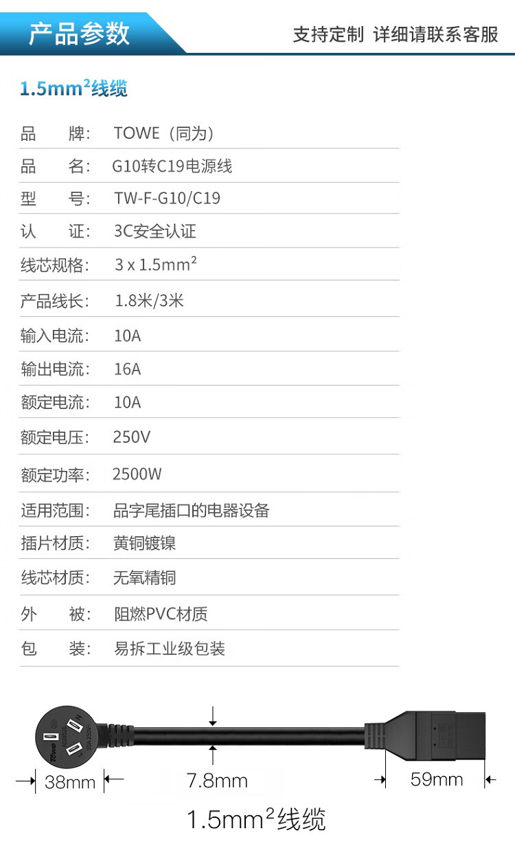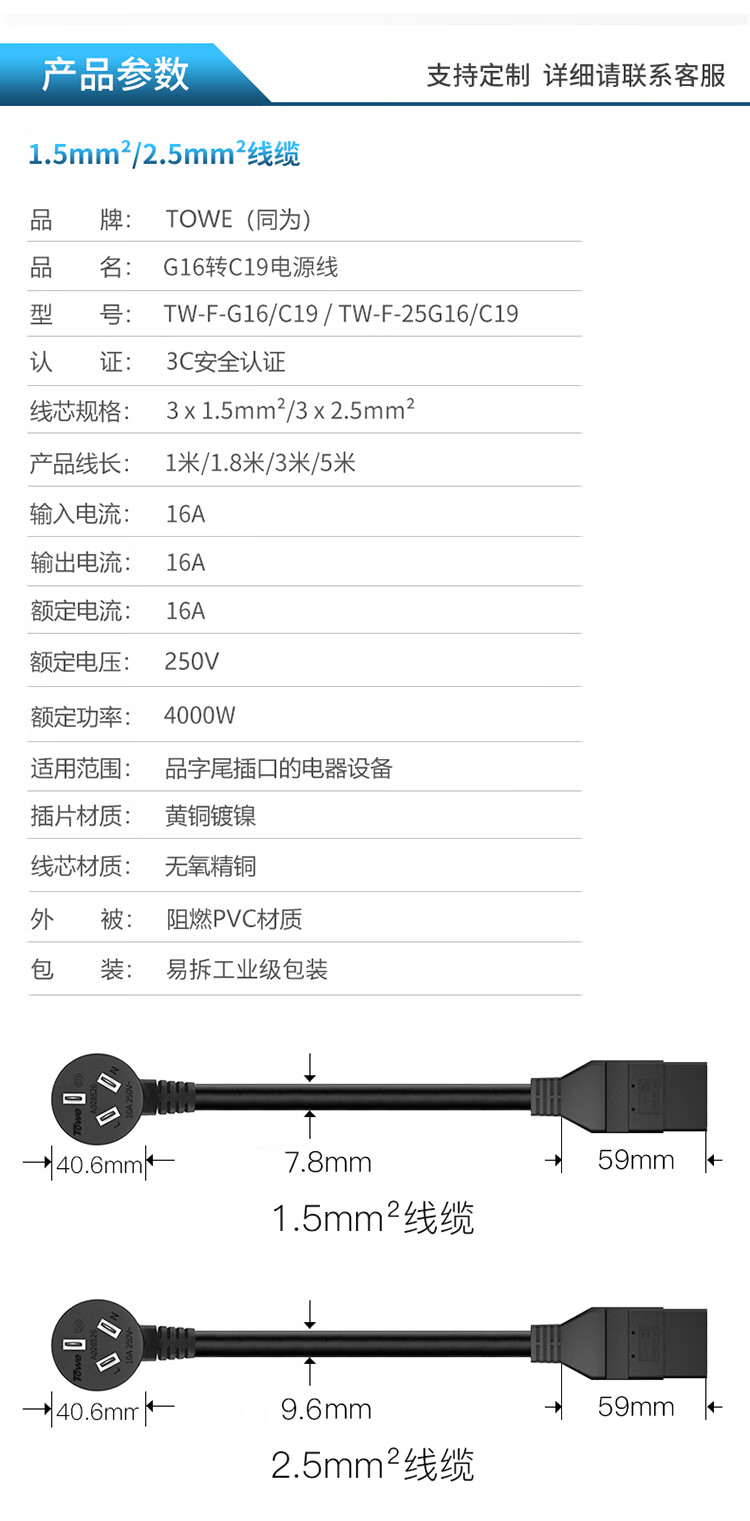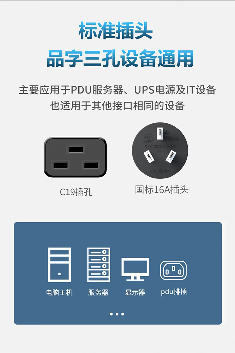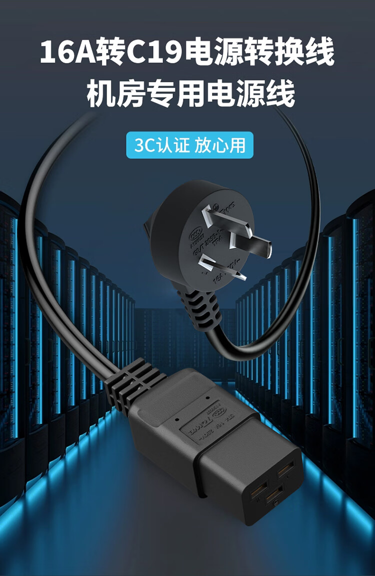 TOWE同为国标16A转C19线2.5平无氧加粗精铜芯电源转换线IDC机房数据中心电源线TW-F-25G16/C19