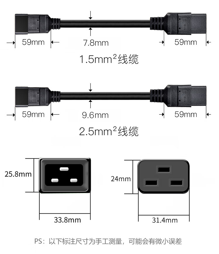 TOWE同为国标16A转C19线2.5平无氧加粗精铜芯电源转换线IDC机房数据中心电源线TW-F-25G16/C19