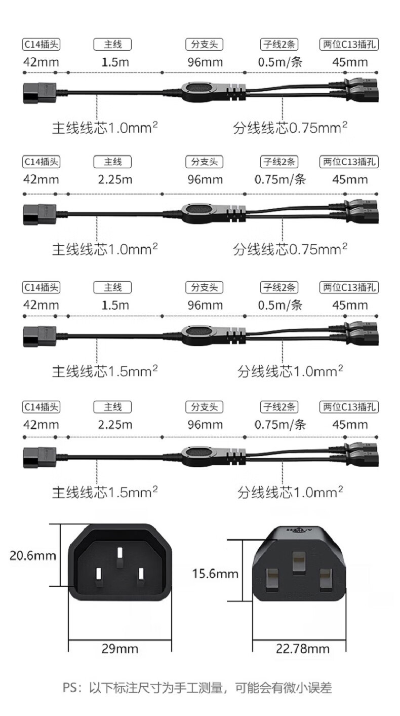TOWE同为 IEC C14转2C13 服务器电脑交换机IDC机房数据中心PDU电源线TW-F-C14/2C13