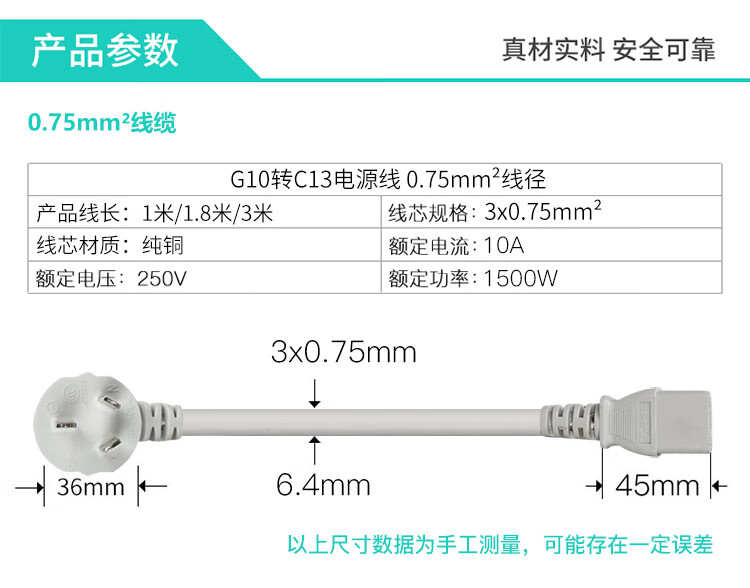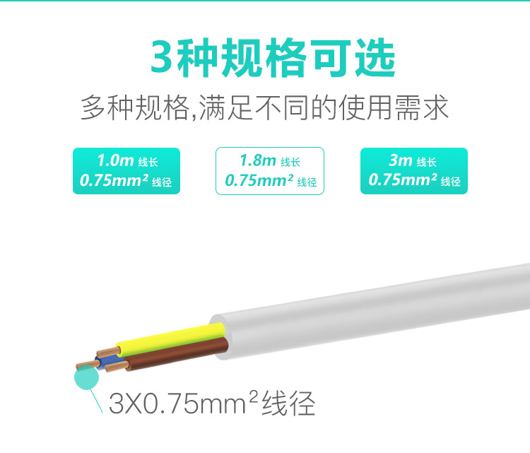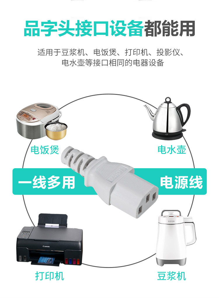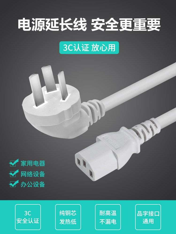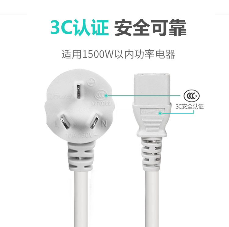 TOWE同为家用小家电电源线 国标10A品字尾电源转换线电源延长线电视洗衣机电饭锅电水壶电炖锅数码设备电源线 TW-F-075G10/C13