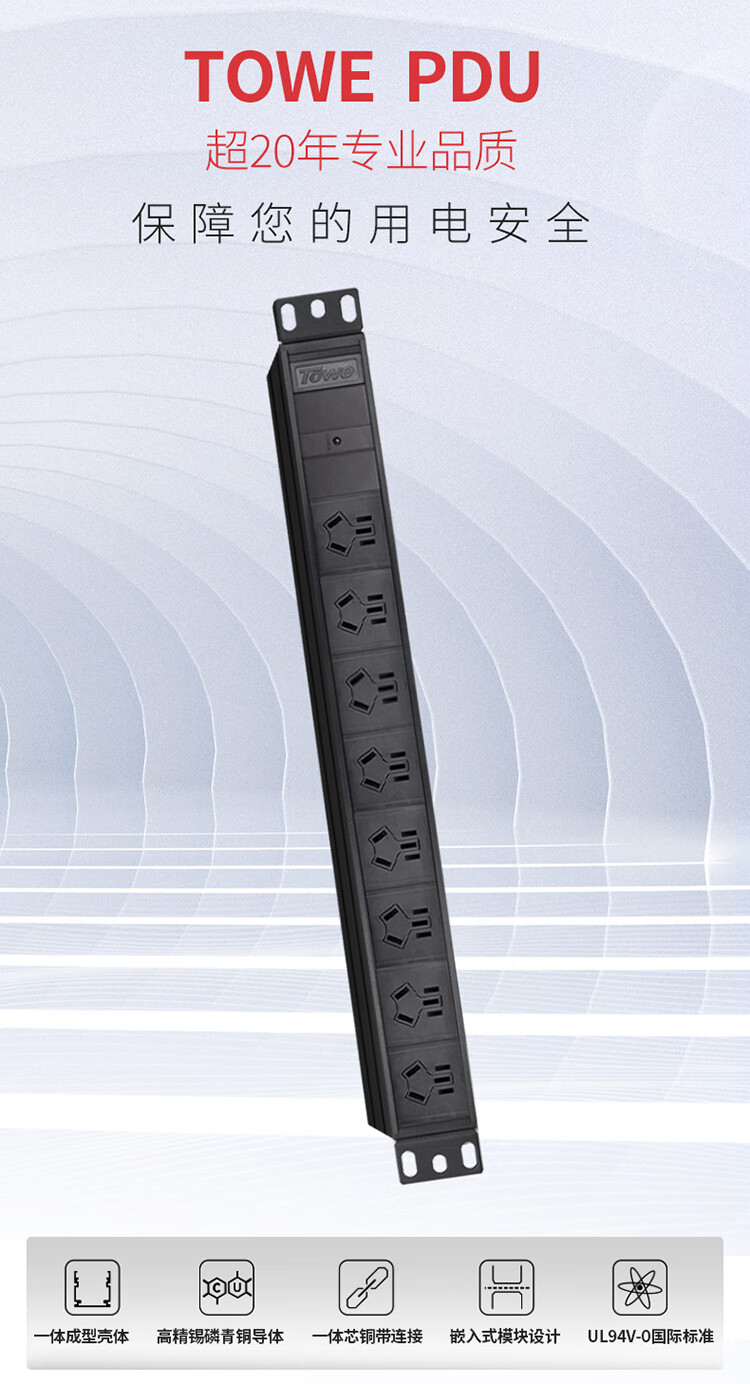 TOWE同为C20输入16A自接线不带线工程安全PDU输出国标10A插孔C20输入国标PDU内置C20输入模块8位10A国标三孔,EN16C/G825
