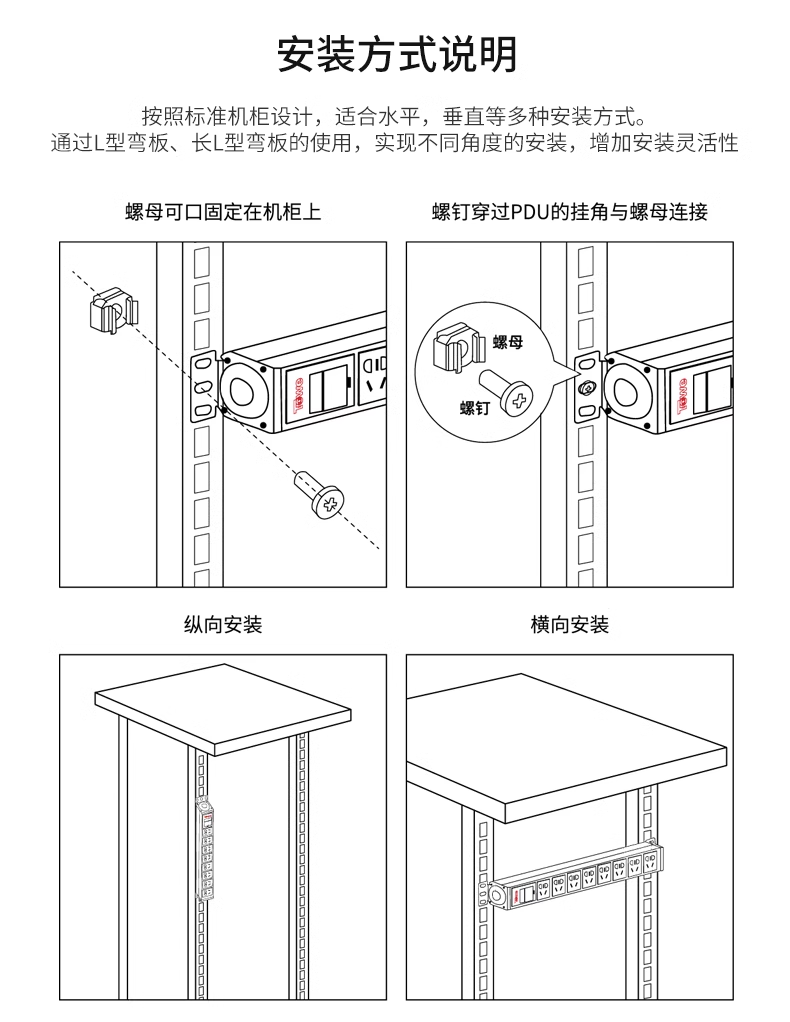 TOWE同为自接线不带线PDU电源机柜插座插排大功率接线盒国标插孔电源分配器横装8位自接线国标PDU专业接线盒8位国标10A五孔,EN32J/G823