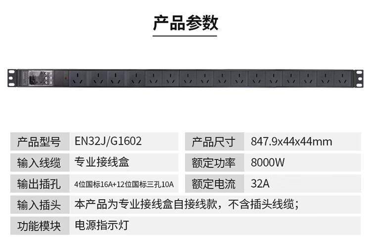 TOWE同为超大功率无线自接线PDU机柜插座竖装多位自接线国标PDU适合工程现场自接线施工4位国标16A+12位国标三孔10A,EN32J/G1602