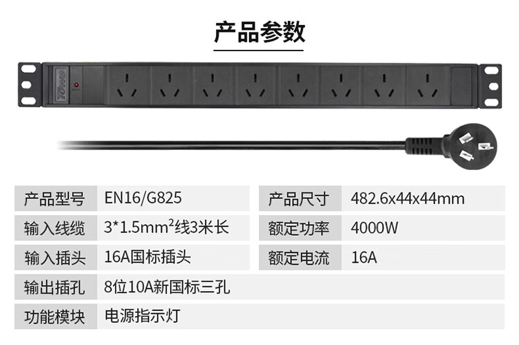 TOWE同为7位8位16A pdu电源机柜插座经济型机柜插排16A国标三孔五孔PDU插座电源分配器国标16A基础款8位10A国标五孔 EN16/G802