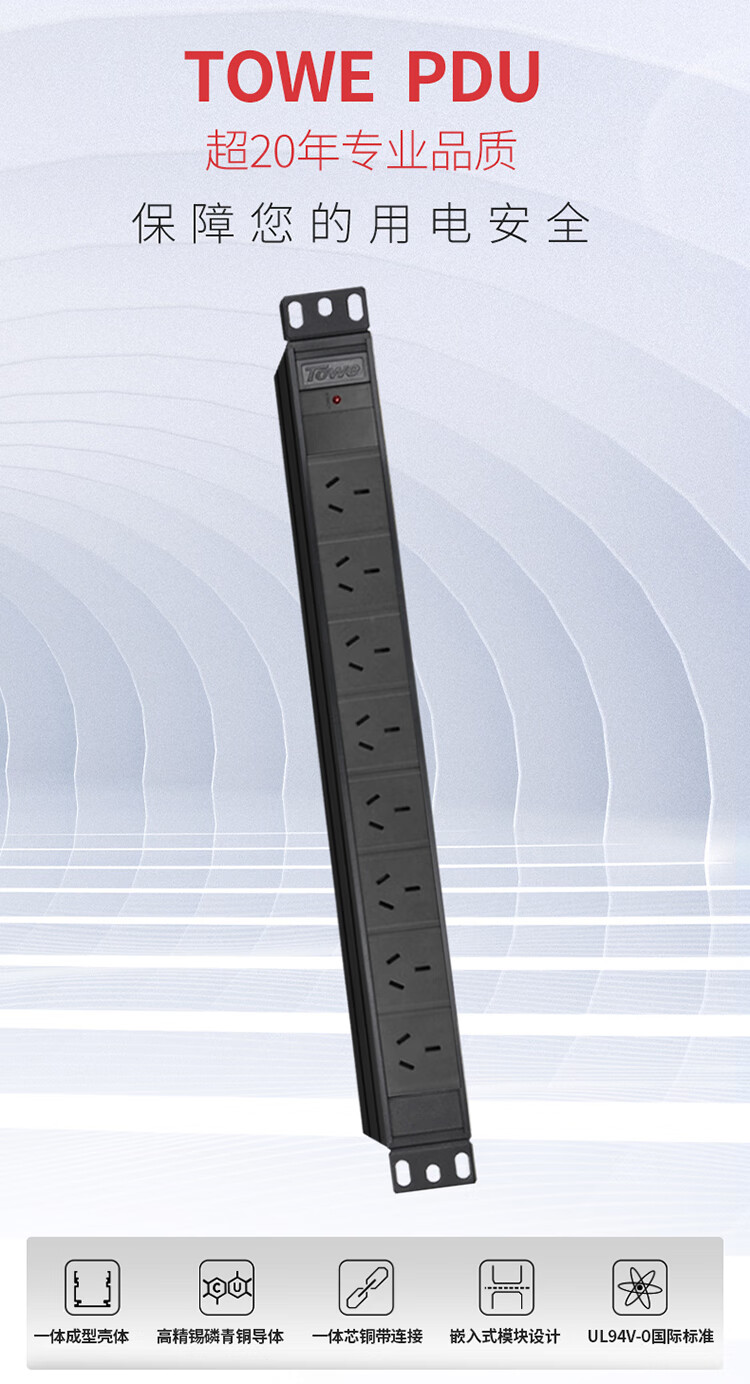 TOWE同为8位pdu基础款 工程安全机柜插排16a PDU电源分配器 国标总控16A IDC机房数据中心PDU排插 8位10A新国标,EN16/G808K