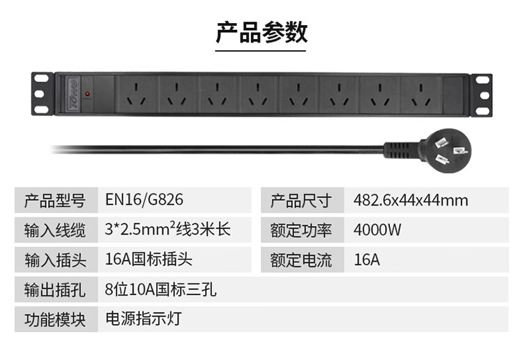 TOWE同为7位8位16A pdu电源机柜插座经济型机柜插排16A国标三孔五孔PDU插座电源分配器国标16A基础款8位10A国标五孔 EN16/G802