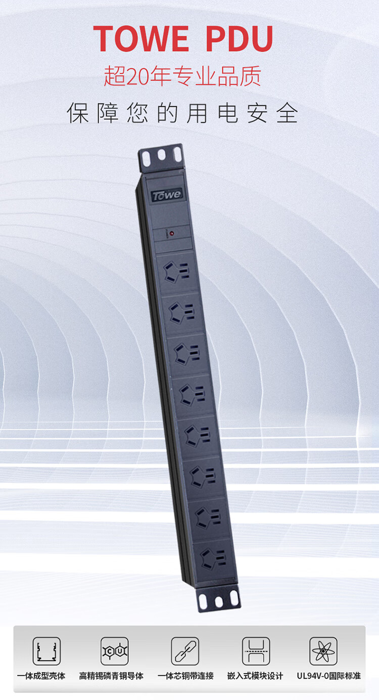 TOWE同为8位pdu基础款 工程安全机柜插排16a PDU电源分配器 国标总控16A IDC机房数据中心PDU排插 8位10A新国标,EN16/G808K