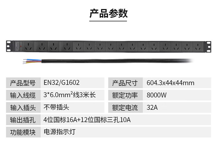TOWE同为32A大功率自接线PDU 输出国标10A16A 12位pdu电源机柜插座 国标竖装4平加粗线缆 2位国标16A +10位10A国标五孔,EN32/G1205