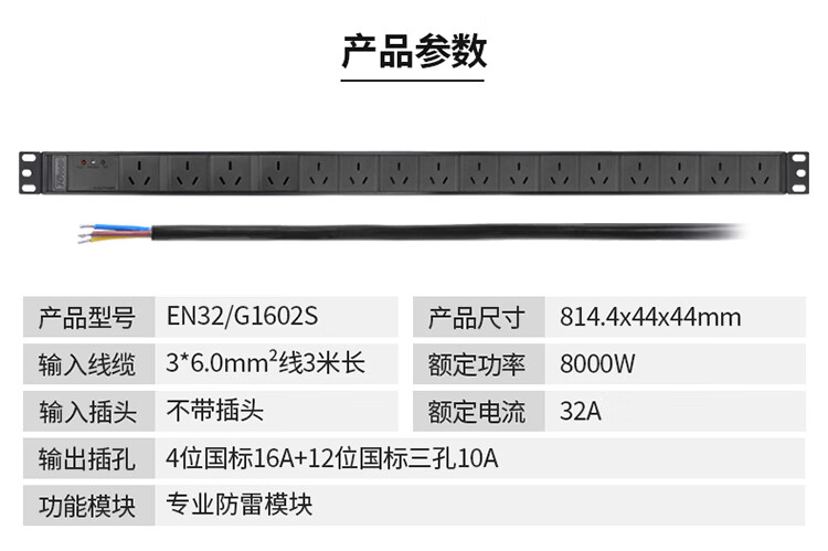 TOWE同为32A大功率自接线PDU 输出国标10A16A 12位pdu电源机柜插座 国标竖装4平加粗线缆 2位国标16A +10位10A国标五孔,EN32/G1205
