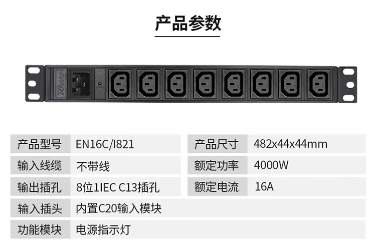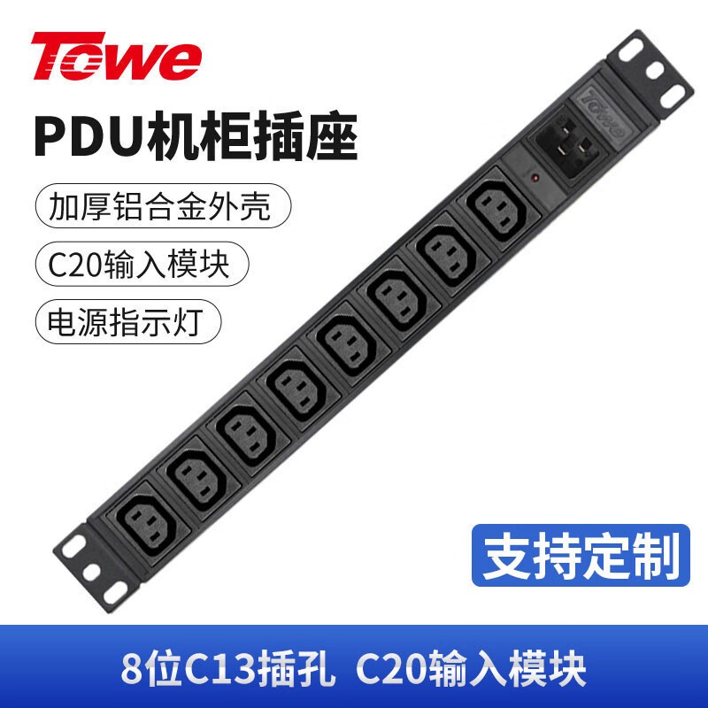 TOWE同为C20输入16A自接线不带线工程安全PDU电源机柜插座插排 输出IEC C13美标欧标插孔 C20输入IEC美标PDU 8位1IEC C13,EN16C/I821