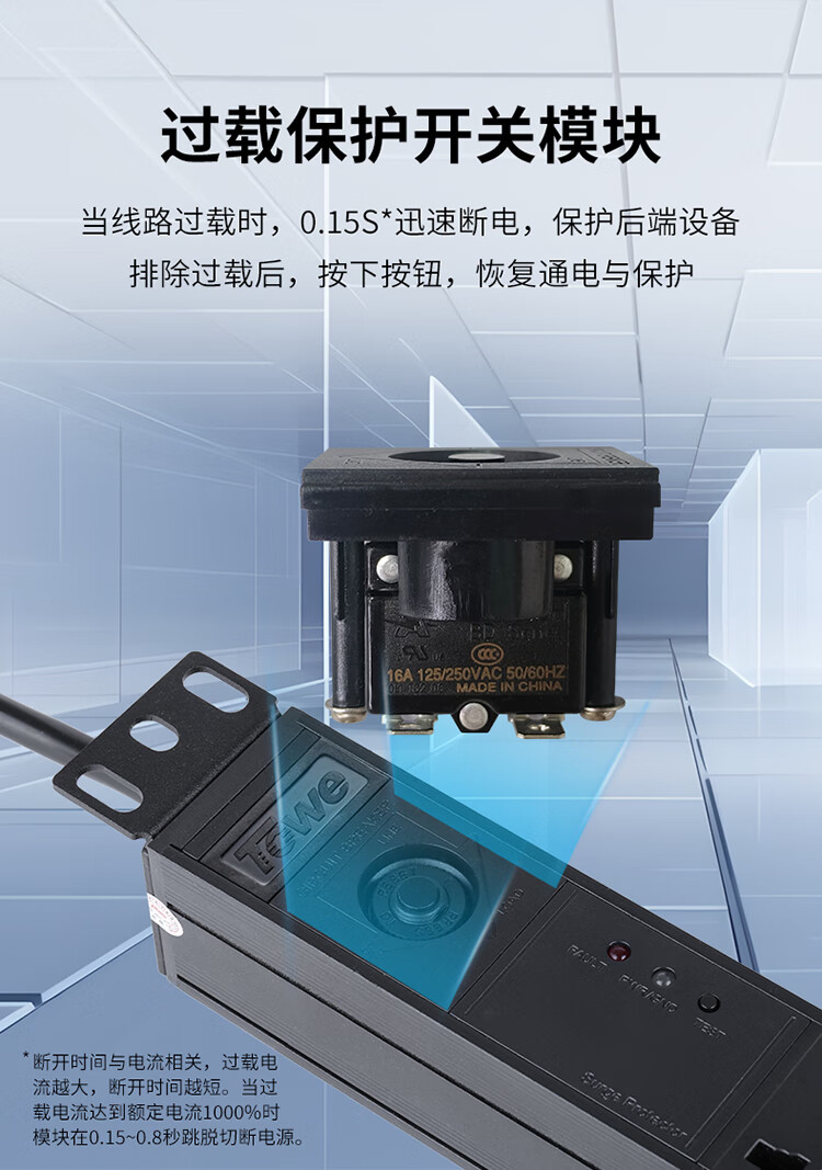TOWE同为IEC工业三级防雷PDU安全机柜插座 机房国际欧标插座 IEC横装专业防雷 1位16A IEC C19插孔+7位10A IEC C13插孔,EN16/I821S