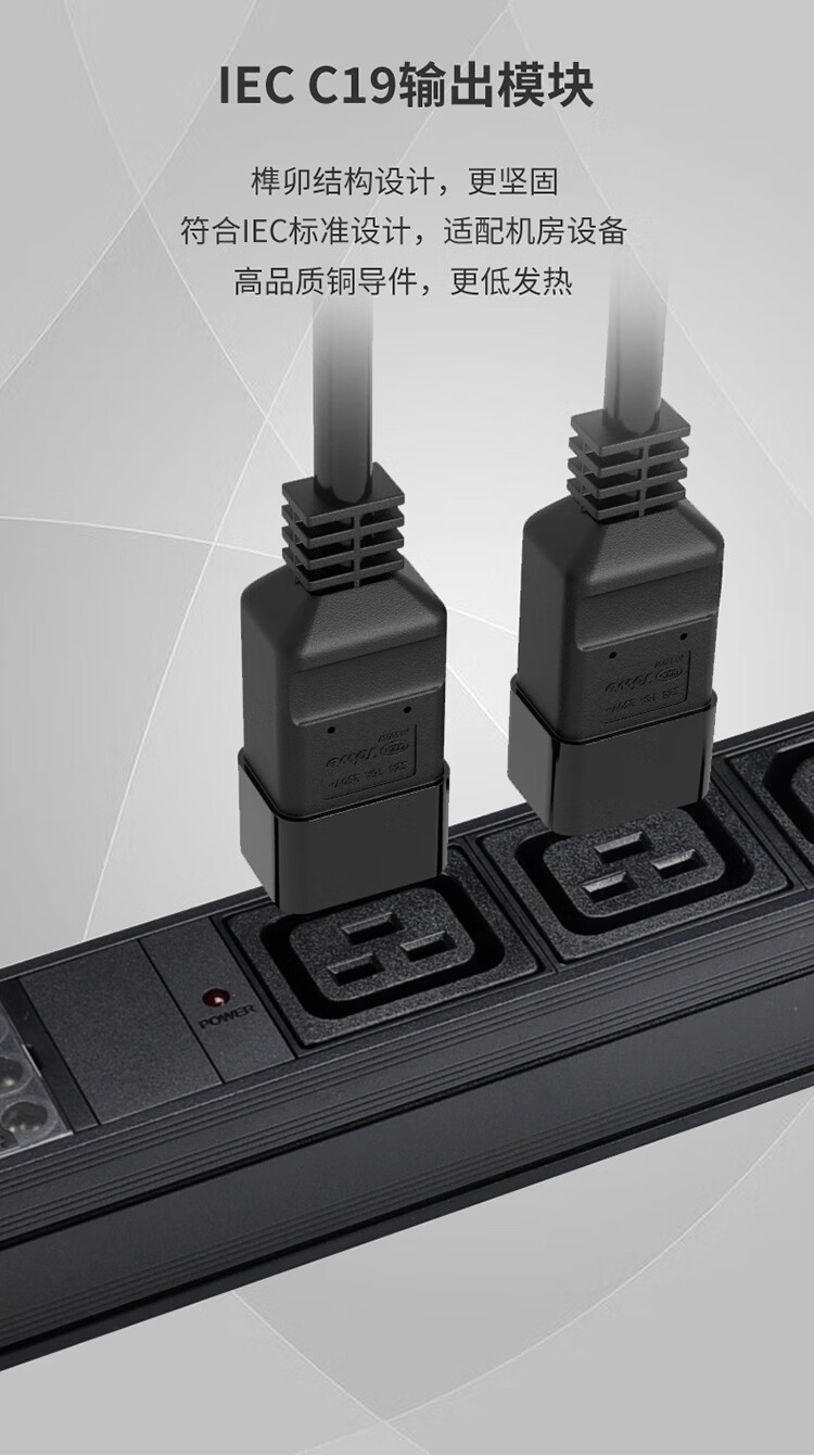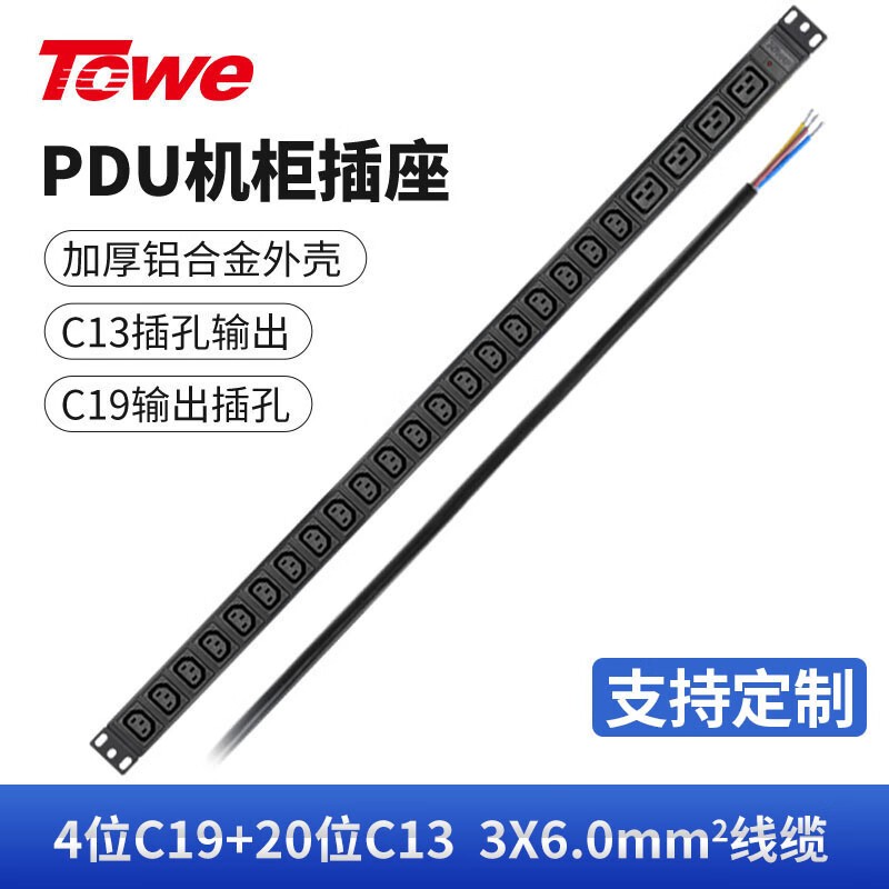 TOWE同为国际通用IEC 32/63A超大功率自接线PDU机柜插座 工程pdu 竖装IEC插孔加粗线缆 2位16A IEC C19+10位10A IEC C13,EN32/I1206