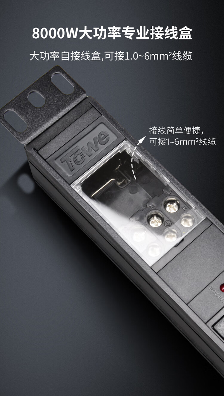 TOWE同为国际通用IEC 32/63A超大功率自接线PDU机柜插座 工程安全pdu插座插排 竖装IEC插孔加粗线缆 4位C19+12位C13,EN32/I1601