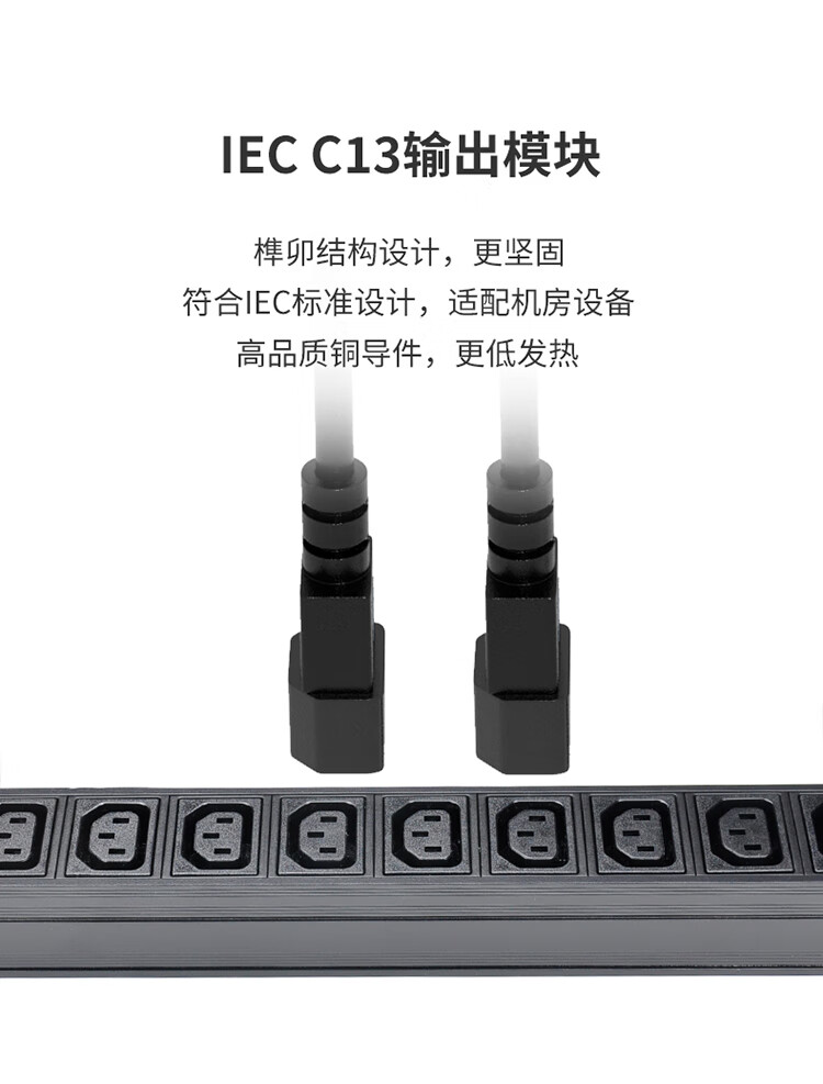 TOWE同为IEC C13工业电源PDU电源机柜插座 国际通用IEC 10A品字尾机柜PDU插座 竖装IEC插孔基础款 12位10A IEC C13,EN16/I1203