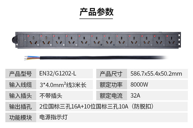 TOWE同为国标防脱扣工程安全机柜PDU插排 输出10A16A国标三孔高可靠性pdu电源机柜插座 防脱扣国标PDU 8位国标三孔10A,EN10/G801S-L