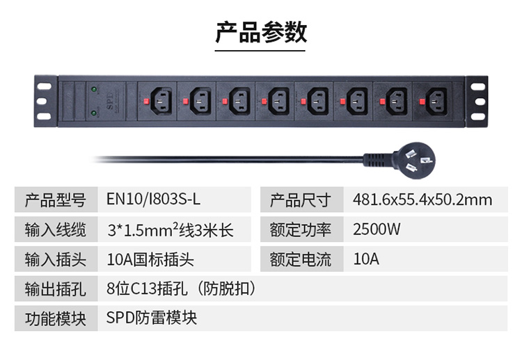 TOWE同为IEC防脱扣工程安全机柜PDU插排 输出IEC C13 C19高可靠性pdu插座 专业防雷 防脱扣IEC PDU 8位C13 SPD防雷 EN10/I803S-L