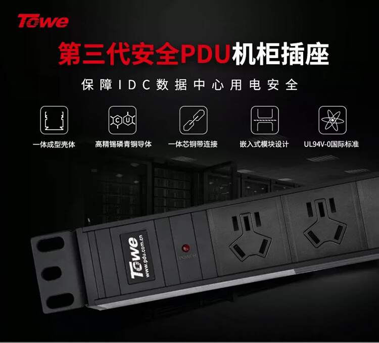 TOWE同为大功率16A/32A工业连接器插头插座PDU机柜插座 带工业插头PDU机柜插座 IDC机房 8位国标16A 三孔加粗双层导电条,EN32G/G824