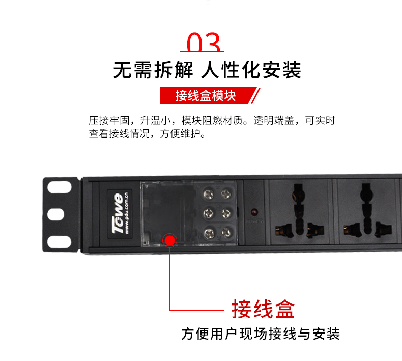 TOWE同为32A/63A/100A超大功率自接线三相PDU电源机柜插座 带断路器熔芯保护 三相三组供电PDU 15位10A新国标五孔,EN32/G1501