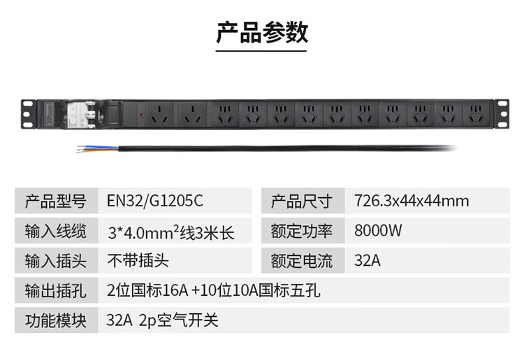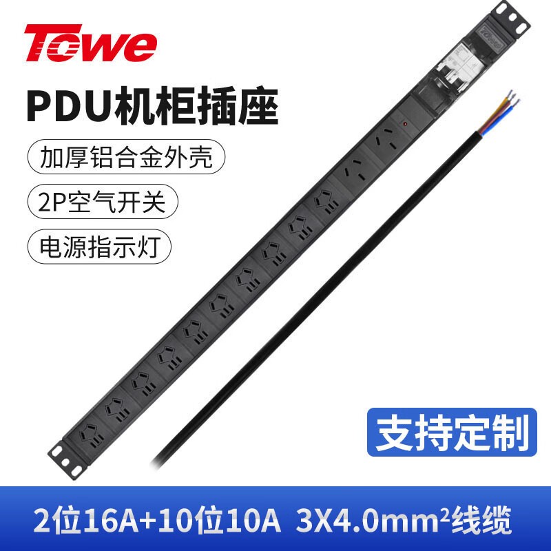 TOWE同为32A/63A超大功率自接线PDU机柜插座 带32A断路器 带断路器PDU工业插座 西门子空开 2位国标16A +10位10A国标五孔,EN32/G1205C