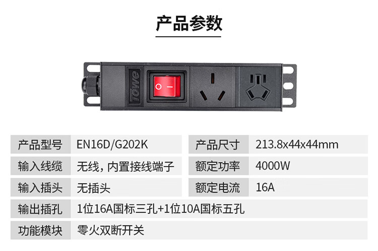 TOWE同为经济型大功率4000W自接线2位/3位/4位/5位机柜插座插排 总控短款工业插座 1位16A国标三孔+1位10A国标五孔,EN16D/G202K
