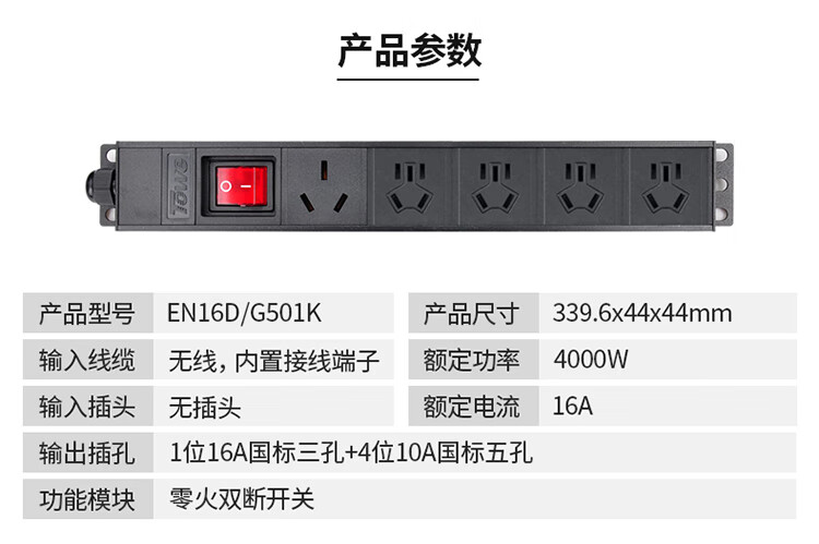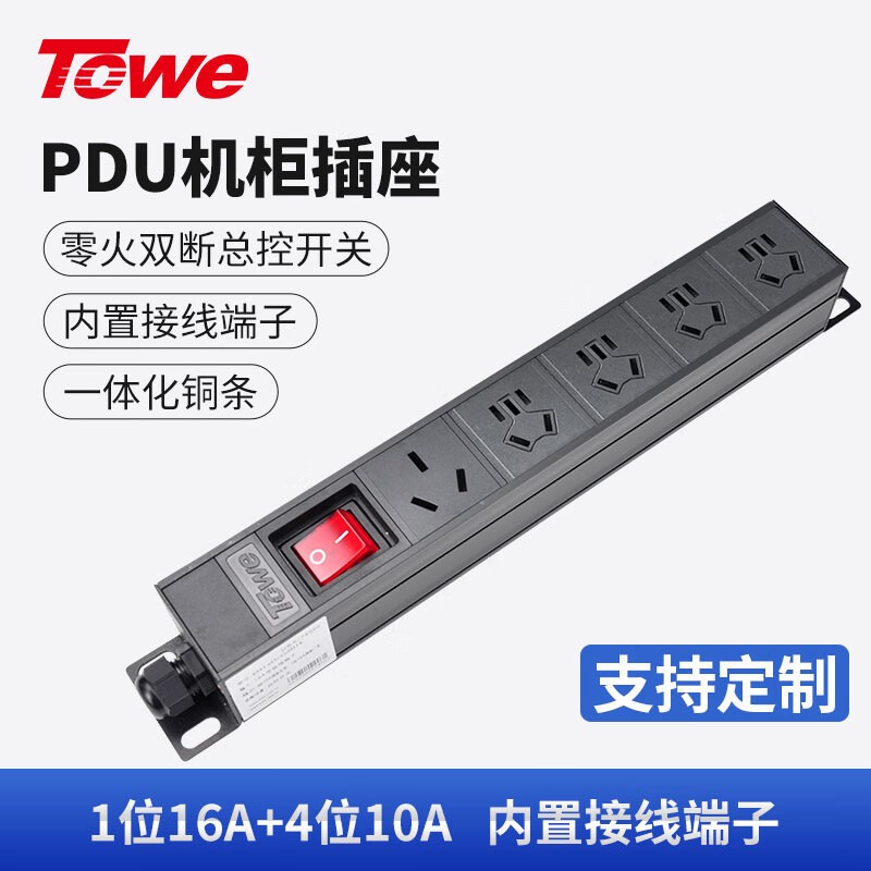 TOWE同为经济型大功率4000W自接线2位/3位/4位/5位机柜插座插排 总控短款工业插座 1位16A国标三孔+4位10A国标五孔,EN16D/G501K