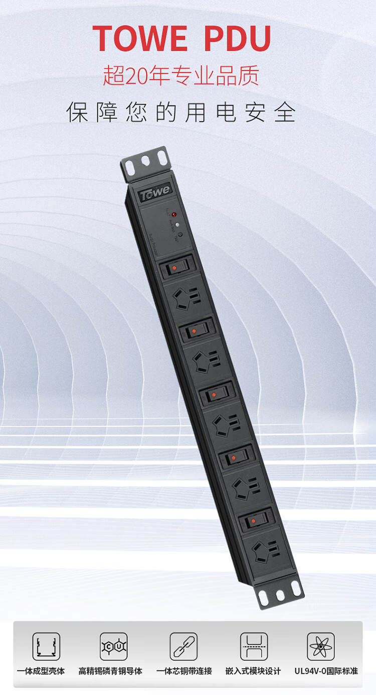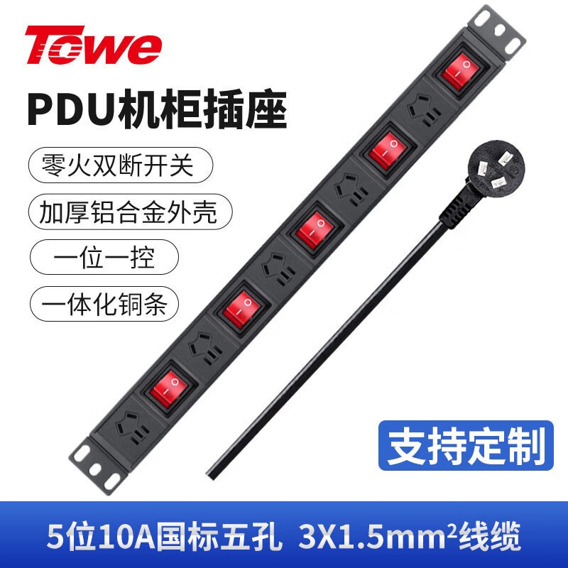 TOWE同为分控pdu机柜机架机箱插座 单开单控工业工程插排 水族鱼缸专用安全插座 分控工业PDU插座 5位10A新国标五孔,EN10/G505K