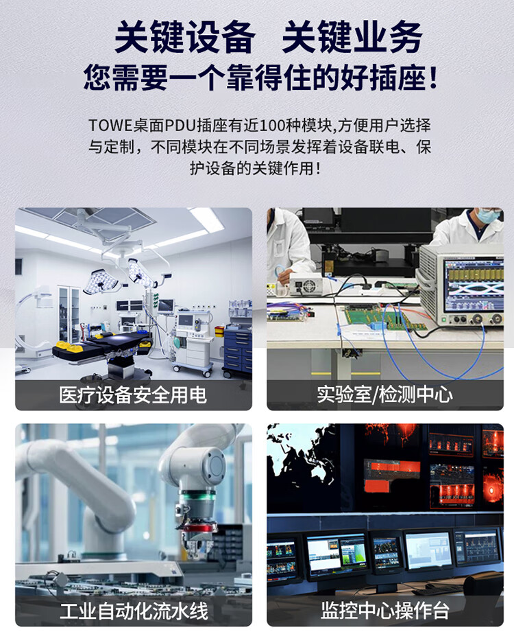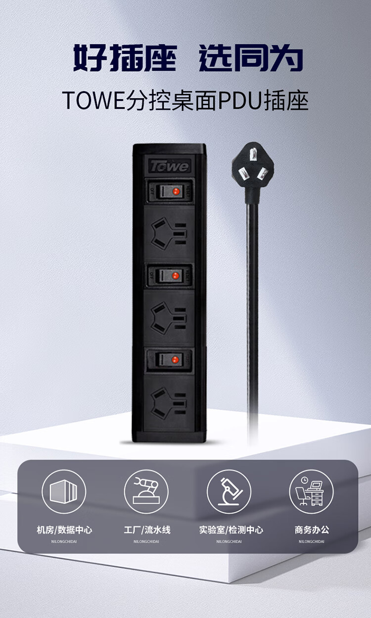 TOWE同为8位pdu基础款 工程安全机柜插排16a PDU电源分配器 国标总控16A IDC机房数据中心PDU排插 8位10A新国标,EN16/G808K