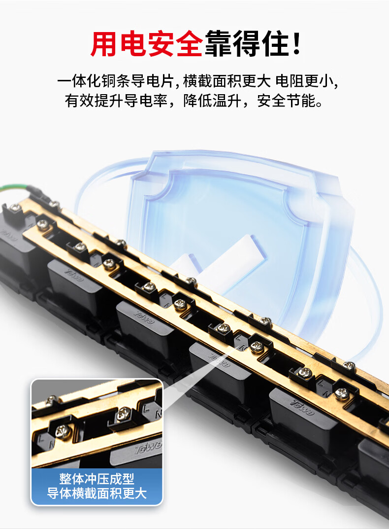 TOWE同为7位8位16A pdu电源机柜插座16A国标三孔五孔PDU插座电源分配器国标16A基础款1位16A国标孔+7位多用孔,EN16/GW804