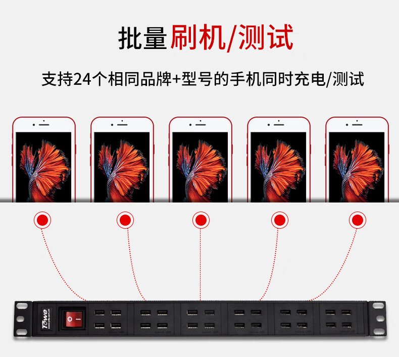 TOWE同为工业级多口多路usb智能插座usb充电器pdu插排 刷机拷机usb智能快充PDU机柜插座 6x4位一体式USB智能快充接口,EN10/USB24SK