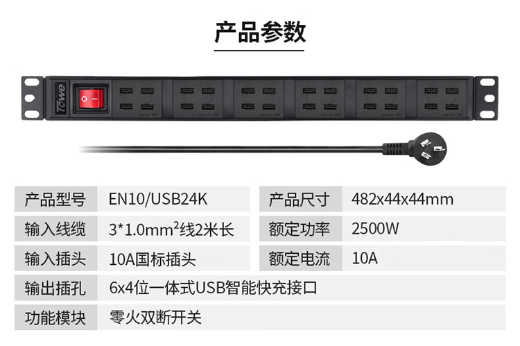 TOWE同为工业级多口多路usb智能插座usb充电器pdu插排 刷机拷机usb智能快充PDU机柜插座 6x4位一体式USB智能快充接口,EN10/USB24K