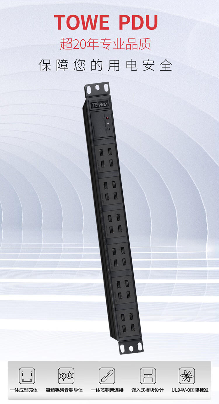 TOWE同为多功能单路双路单排双排电源管理器 多功能柜员电源管理器 三合一总控开关+浪涌保护+10位10A新国标五孔,EN10/G13U2SE
