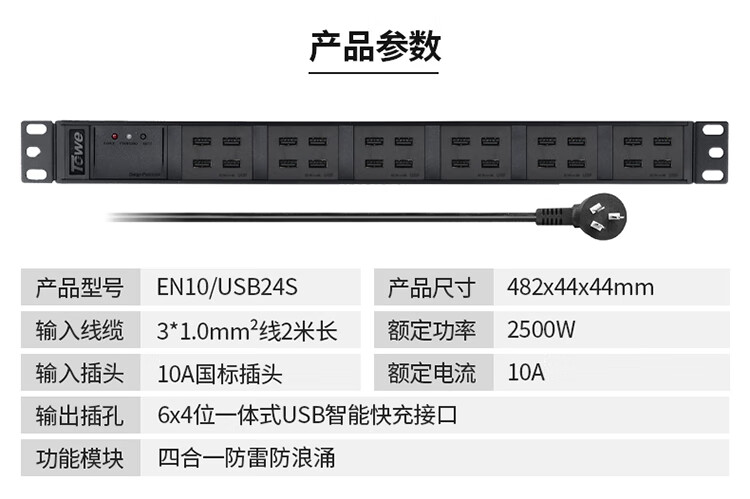 TOWE同为工业级多口多路usb智能插座usb充电器pdu插排 刷机拷机usb智能快充PDU机柜插座 6x4位一体式USB智能快充接口,EN10/USB24K