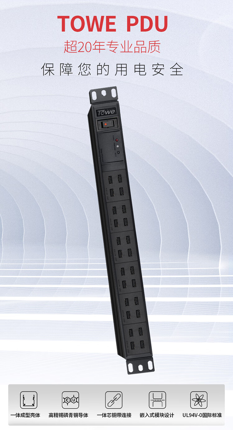 TOWE同为工业级多口多路usb智能插座usb充电器pdu插排 刷机拷机usb智能快充PDU机柜插座 4x4位一体式USB智能快充接口,EN10/USB16S